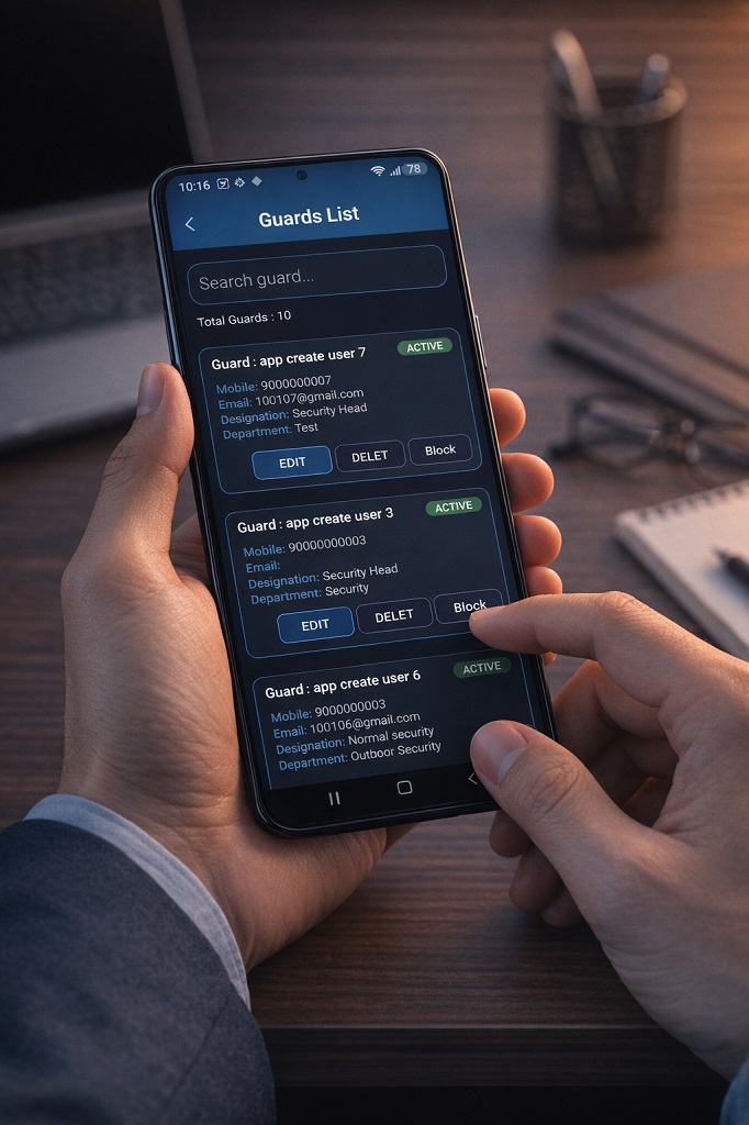Guards scan QR codes or enter geo-fenced zones using mobile devices. The system verifies time, location, and activity instantly, ensuring accountability, transparency, and improved operational security. Ideal for security agencies, gated communities, factories, schools, and large facilities.